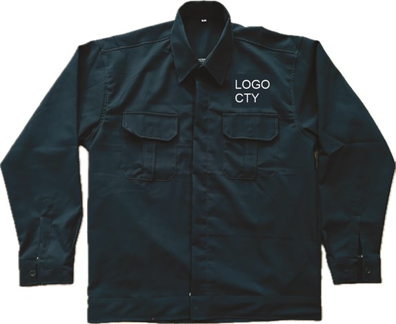 Quy cách: áo tay dài , 2 túi trước ngực , In / thêu logo công ty , tà áo dấu nút